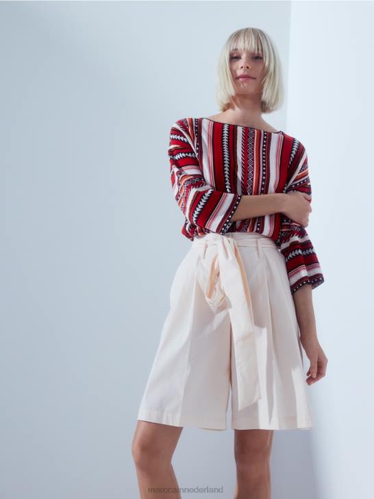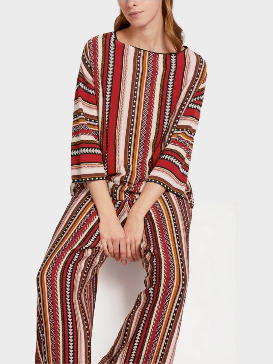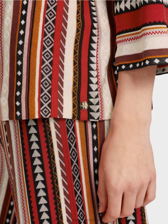 deze trui is gemaakt van een zachte, lichtgewicht viscose-katoenmix en heeft een spannend levendige kleur schema in roodtinten. de randachtige verticale streep doet denken aan traditionele handweeftechnieken. het is boxy van vorm en de mouwen zijn laag aangezet. de trui is "gebreid in Duitsland". het wordt in Duitsland gebreid en afgewerkt met de nieuwste technologie en de afzonderlijke stukken zoals de mouwen en voorkant enz. worden bij onze Europese partnerbedrijven aan elkaar genaaid.