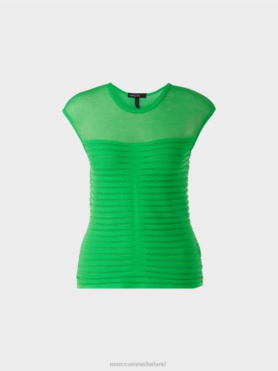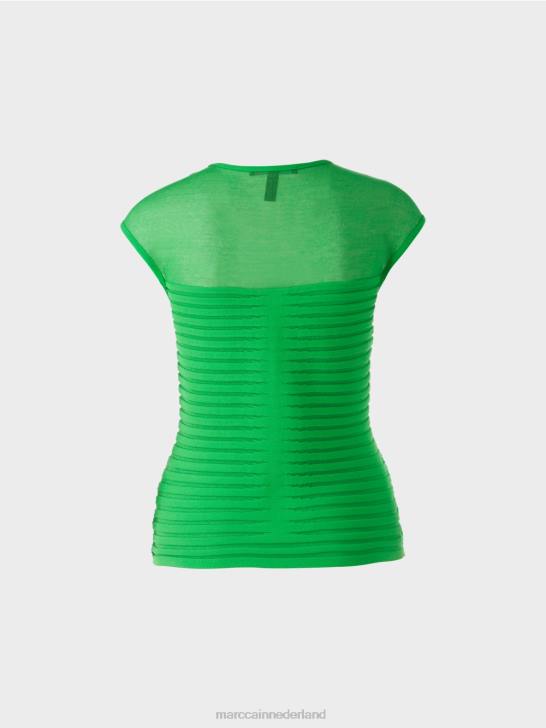 kleding donker appelgroen 464J1034 gestreepte "rethink Together" top Marc Cain