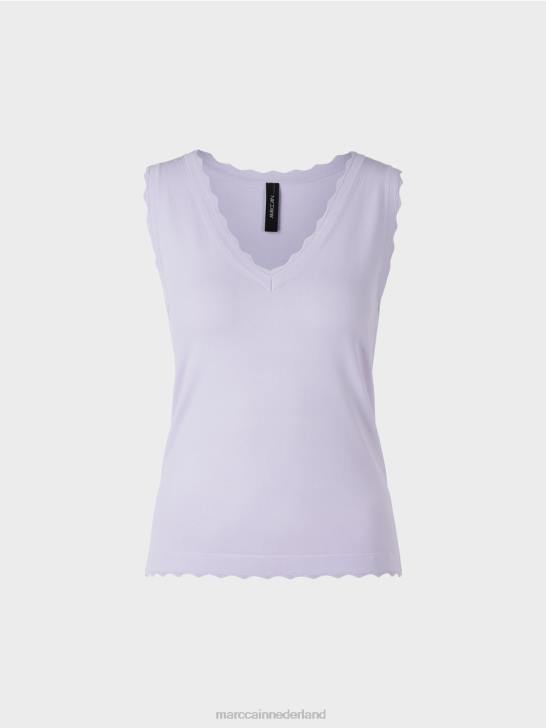 deze mouwloze top heeft een diepe v-hals waardoor hij luchtig en comfortabel is om te dragen. Het is gebreid van fijn viscosegaren en voelt aangenaam koel aan op de huid. de golvende bies aan de zoom, hals en armsgaten is een eyecatcher.