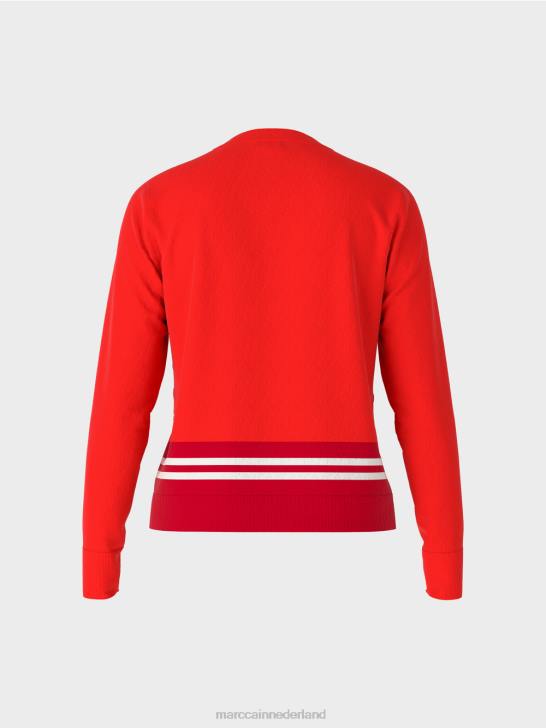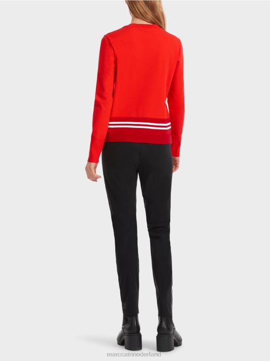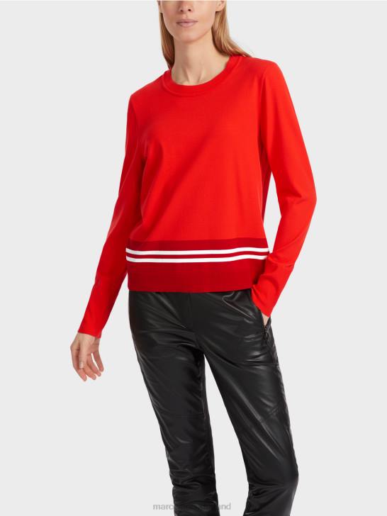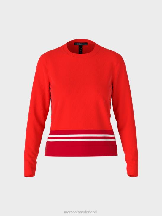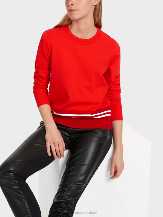 de wollen trui is gemaakt van een garen op viscosebasis en heeft een zacht vallend silhouet. de snit is smal bij de schouder en breed bij het lichaam. de zoom wordt geaccentueerd met een gestreepte rand. de trui draagt het duurzaamheidslabel ‘rethink Together’. bovendien is het artikel "gebreid in Duitsland". het is gebreid en verfraaid in Duitsland met behulp van de nieuwste technologieën. de afzonderlijke delen, zoals de rug en mouwen enz., worden in Europese partnerbedrijven aan elkaar genaaid.