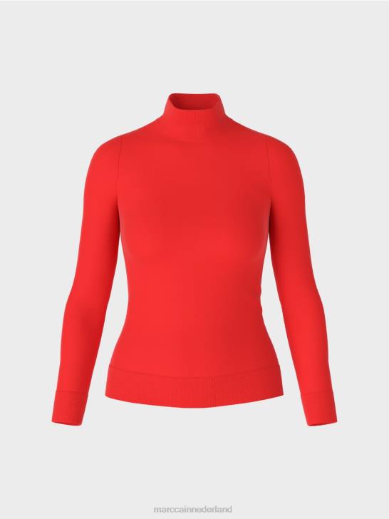 nauwsluitende trui van zachte fijngebreide viscosebasis. de kraag is hooggesloten. de mouwen en zoom zijn afgewerkt met klassiek ribgebreid. het model draagt ​​het duurzaamheidslabel "rethink Together" en wordt gebreid en tevens afgewerkt in de Duitse vestiging. de verdere verwerking van de afzonderlijke onderdelen wordt uitgevoerd door Europese partnerbedrijven. dit betekent dat het artikel "gebreid in Duitsland" is.
