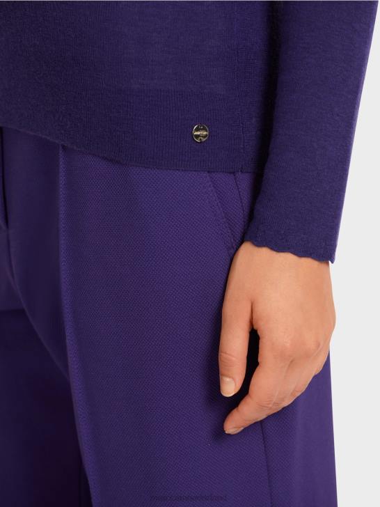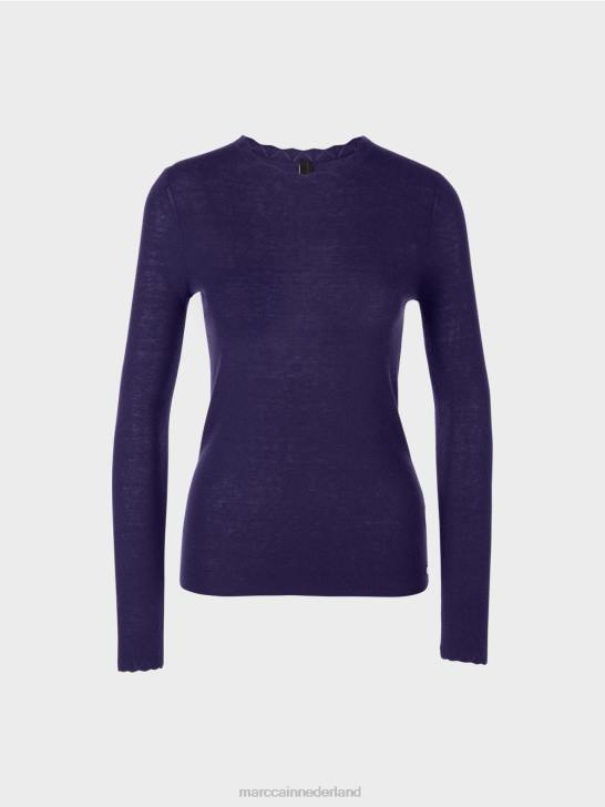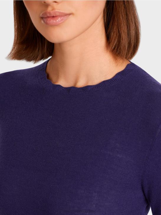 elegante wollen trui met zachte kasjmier. deze effen gebreide trui is een elegante en discrete basic. het heeft lange mouwen en een nauwsluitend silhouet. de kanten versiering aan de ronde hals en mouwzomen zorgt voor een bijzonder tintje.