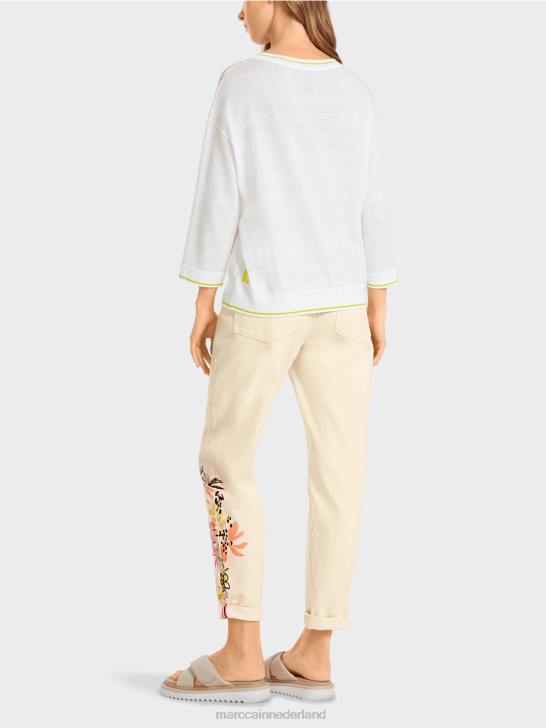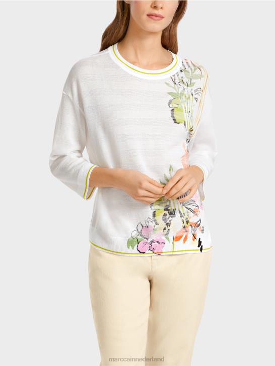 casual gebreide trui in een materiaalmix. deze trui heeft een bloemmotief aan de linkerkant. het brede silhouet heeft verlaagde schouders en een ronde hals. de trui wordt gebreid en afgewerkt in ons bedrijf in Duitsland. de verdere verwerking van de afzonderlijke stukken wordt uitgevoerd door onze partnerbedrijven in Europa. dit maakt het artikel "gebreid in Duitsland".