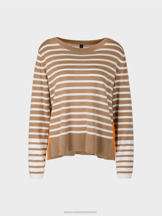 hoogwaardige gebreide trui met wol en kasjmier. de gevlochten strepen in contrasterende kleuren geven een onderscheidend accent aan het sportieve streepdessin van deze trui. de boothals en zijsplitten accentueren de relaxte look, net als de boxy-vorm.