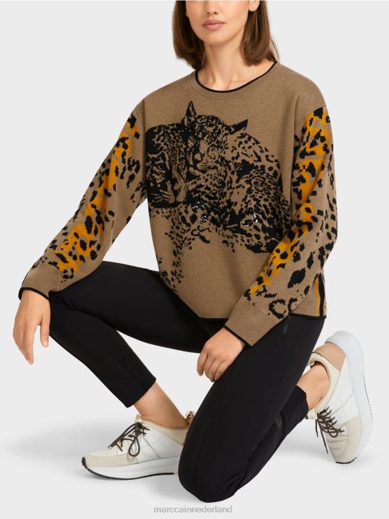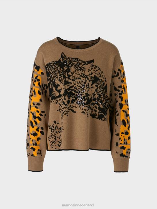 indrukwekkende trui in een mix van wol en kasjmier. Deze gebreide trui heeft verschillende highlights en valt op door het all-over luipaarddessin. de contrasterende vlechtdetails aan de zijkanten dragen bij aan de aantrekkingskracht. Ook de geribde gebreide boorden aan de brede ronde halslijn en mouwen hebben een gestreept patroon. verlaagde schouders en een smalle zoom in zwart versterken het losse silhouet.