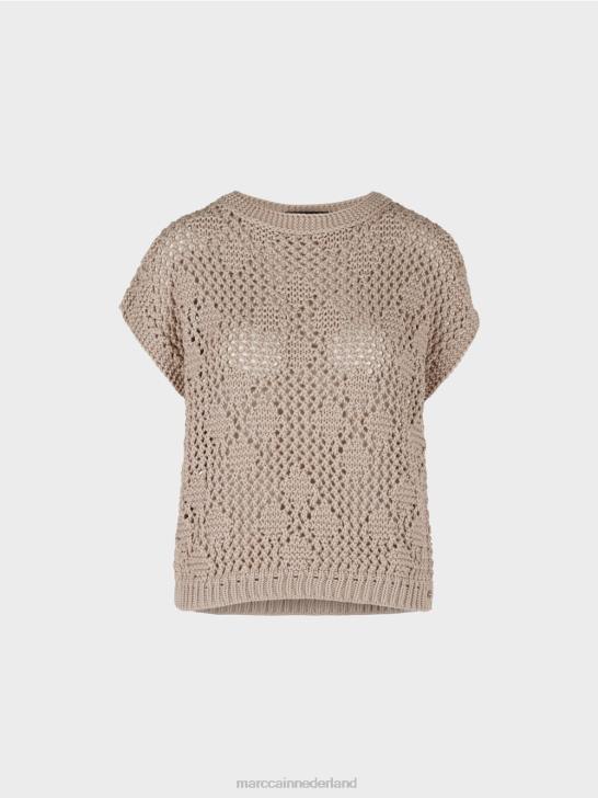 oversized gebreide top met verlaagde schouders. het heeft een mesh-achtige achterkant afgewisseld met gelijkmatig geplaatste diamanten. de rechte vorm wordt benadrukt door geribde gebreide zijnaden en armsgaten.