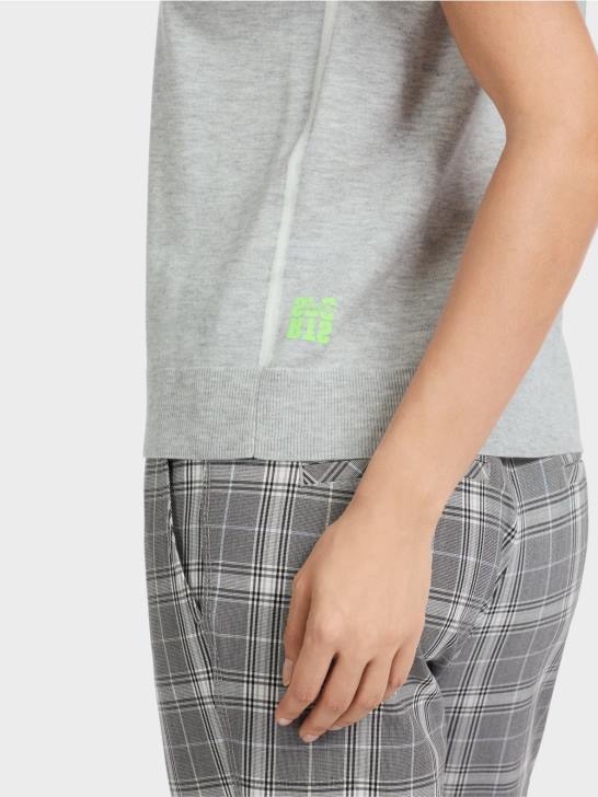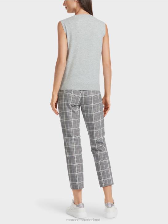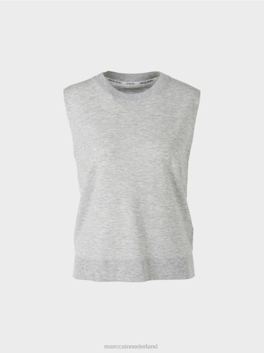 de schoonheid van de slipover ligt in het minimalistische ontwerp en de zachte garenmix. de vezel is op wolbasis en bevat viscose en kasjmier. designkenmerken zijn onder meer de opvallende schoudernaad en de contrasterende streep in de zijnaad.