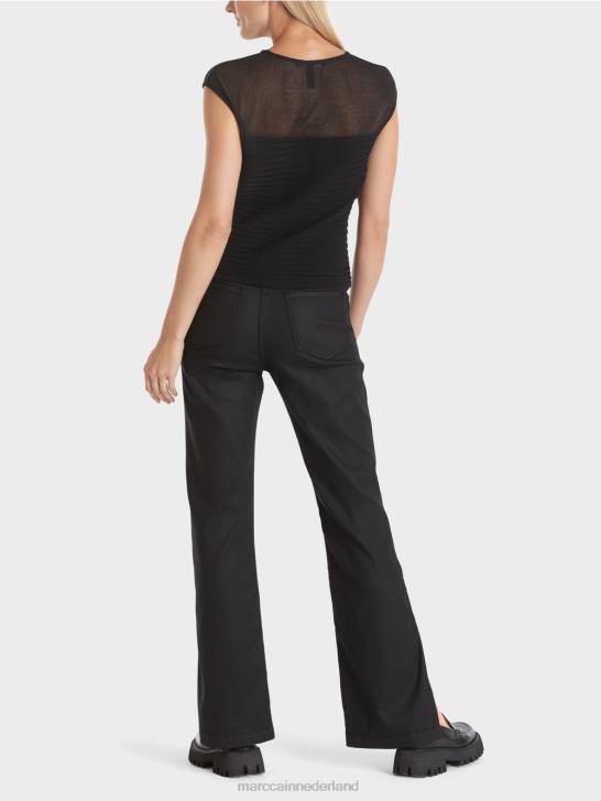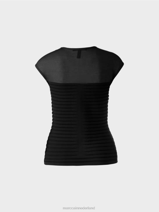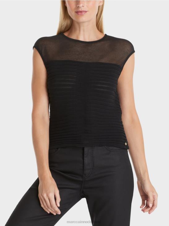 top met viscose- en katoenaandeel. het doorschijnende materiaal in een gestreept dessin geeft deze top een bijzondere touch. het heeft een ronde hals en een nauwsluitende snit. de top wordt gebreid en ook verfraaid op onze locatie in Duitsland. de verdere verwerking van de afzonderlijke onderdelen wordt uitgevoerd door Europese partnerbedrijven. dit betekent dat het artikel "gebreid in Duitsland" is.