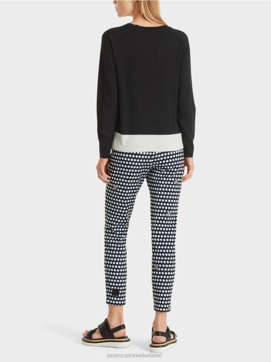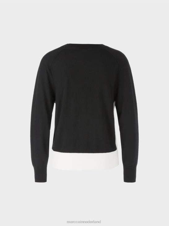 exclusief garen in wol, viscose, polyamide en kasjmier geeft deze trui zijn elegante silhouet. het kledingstuk heeft raglanmouwen en een vrouwelijke ronde hals. de zomen zijn klassiek afgewerkt met manchetten. de contrasten in textuur en kleur geven het een individueel karakter.
