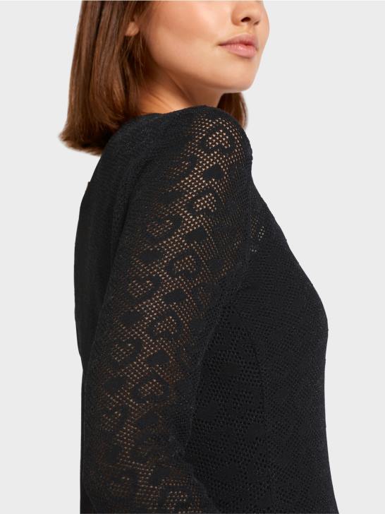 lichtgewicht trui in een mix van materialen met een hartvormig geperforeerd ontwerp. deze effen doorzichtige trui is gebreid en afgewerkt in onze fabriek in Duitsland. de verdere verwerking van de afzonderlijke stukken wordt uitgevoerd door onze partnerbedrijven in Europa. dit maakt het ontwerp met ronde hals "gebreid in Duitsland". het silhouet is nauwsluitend.