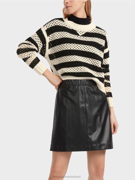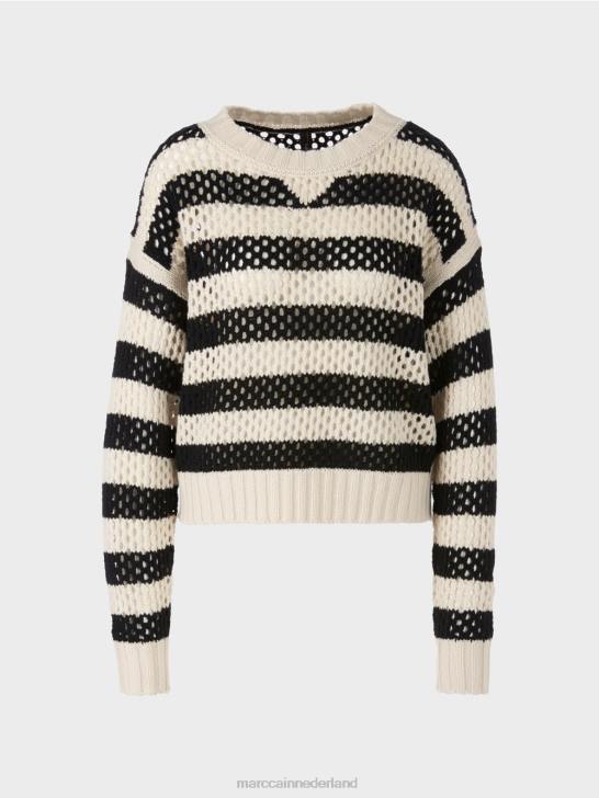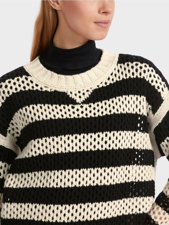 mix van stijlen: deze trui combineert een delicaat ajourpatroon en sportieve blokstreep. het kantpatroon is all-over en maakt het zacht en licht. de vorm van de trui is boxy en de mouwen zijn laag aangezet. het artikel draagt het duurzaamheidslabel ‘samen heroverwegen’.