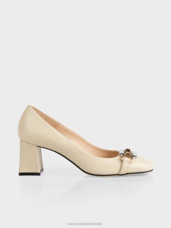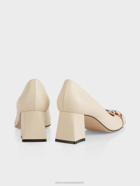 deze hoge pumps presenteren zich met een beklede blokhak. ze zijn gemaakt van hoogwaardig glad leer. een metalen decoratieve sluiting benadrukt de vrouwelijke stijl. het ontwerp wordt gecompleteerd door een vierkante punt.