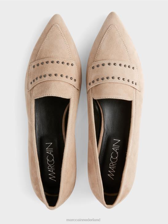 stijlvolle ballerina's met een taps toelopende vorm. De ballerina's zijn voorzien van studs en zijn gemaakt van zacht suède. ze hebben ook een kleine hak.