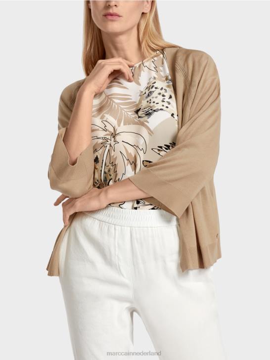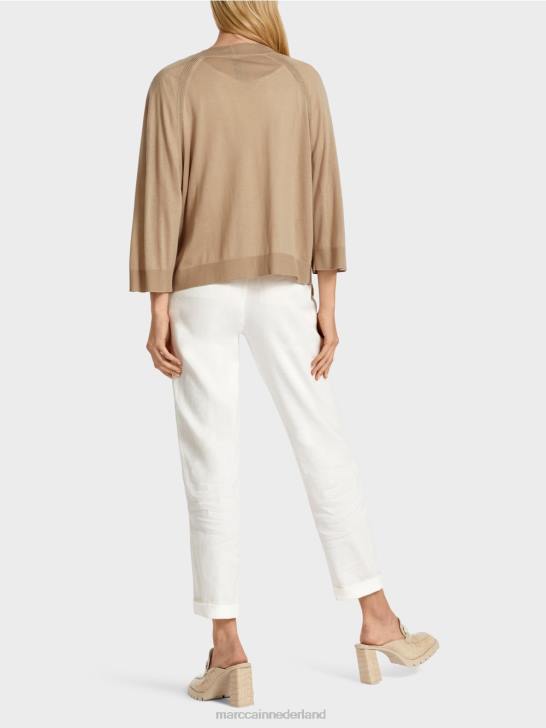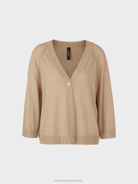 dit gebreide vest is gemaakt van een superfijn en zacht vloeiend breisel. de 3 4-lengte en rechte mouwen zijn een verwijzing naar de jaren vijftig. het gebreide vest wordt gesloten met een enkele knoop. Zomen en randen zijn van klassiek geribd breisel. het geperforeerde patroon in de raglannaad zorgt voor een decoratief detail.