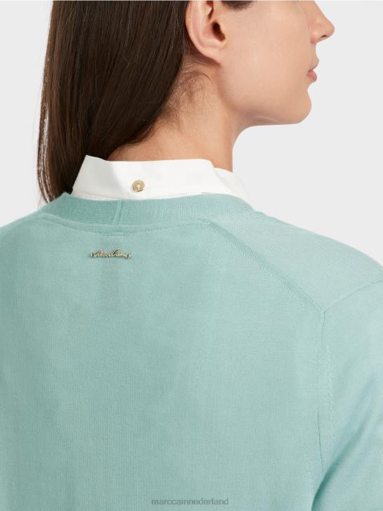 Home| kleding| jassen| kleding donker hemelsblauw 464J342 "rethink Together" wollen vest Marc Cain
