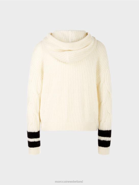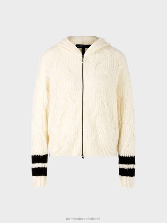 het vest is oversized gesneden en heeft een gestileerd kabelpatroon op de voorkant en mouwen. Kenmerkend is de lichtheid en zachtheid. deze is gebaseerd op een verfijnde wolmix met alpaca, viscose en kasjmier. het stuk is "gebreid in Duitsland": het wordt in Duitsland gebreid en verfraaid met behulp van de nieuwste technologieën en de afzonderlijke onderdelen zoals de voor- en achterkant enz. worden in Europese partnerbedrijven aan elkaar genaaid.