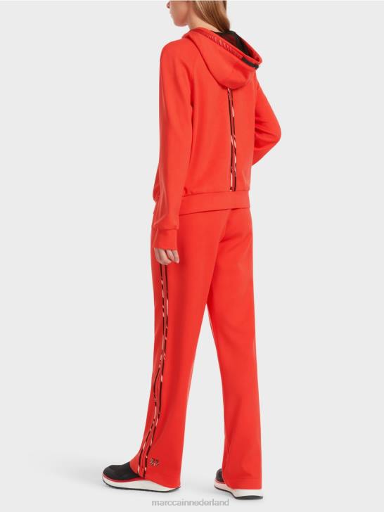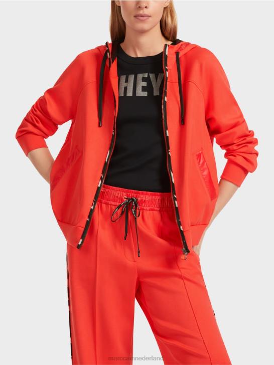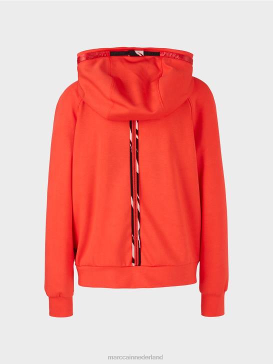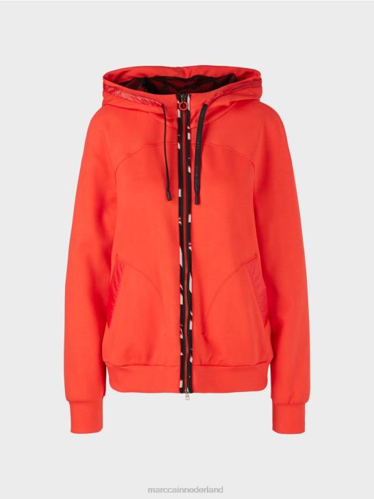 het jack met capuchon is gedetailleerd afgewerkt. Zo is de capuchon gevoerd met mesh en voorzien van een trekkoord in contrasterend materiaal. Ook de schuine zakken zijn van hetzelfde materiaal gemaakt. passepoiles met patroon sieren de randen met ritsen, de middenrug en de randen van de mesh-voering in de jas.