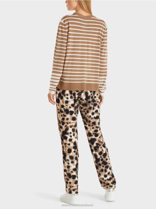 nautisch vest in een hoogwaardige mix van wol en kasjmier. dit gebreide jasje heeft een all-over gestreept patroon. de vlechtstrepen zorgen voor prachtige details. kleine zijsplitten verbeteren de ontspannen pasvorm. Tot de jasdetails behoren een v-hals en knopen.