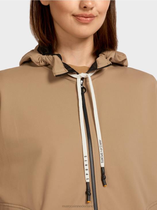 sweatshirtjack van zachte katoenmix in sportieve eivorm. Deze jas dankt zijn karakteristieke snit aan de kapmouwtjes die op de onderarm zijn ingewerkt. het ontwerp heeft kleine zijzakken en geribde gebreide details aan de achterkant en op de mouwboorden. het wordt vastgemaakt met een o-ringritssluiting. een grote capuchon en mesh-details ronden het sportieve design op authentieke wijze af.