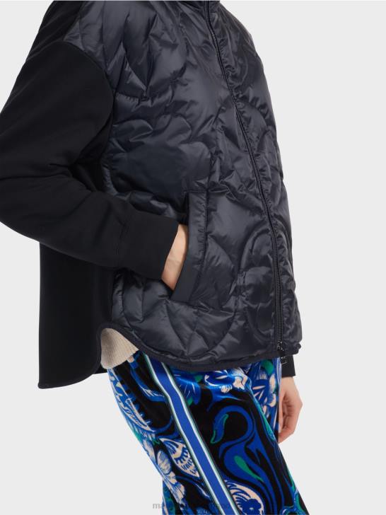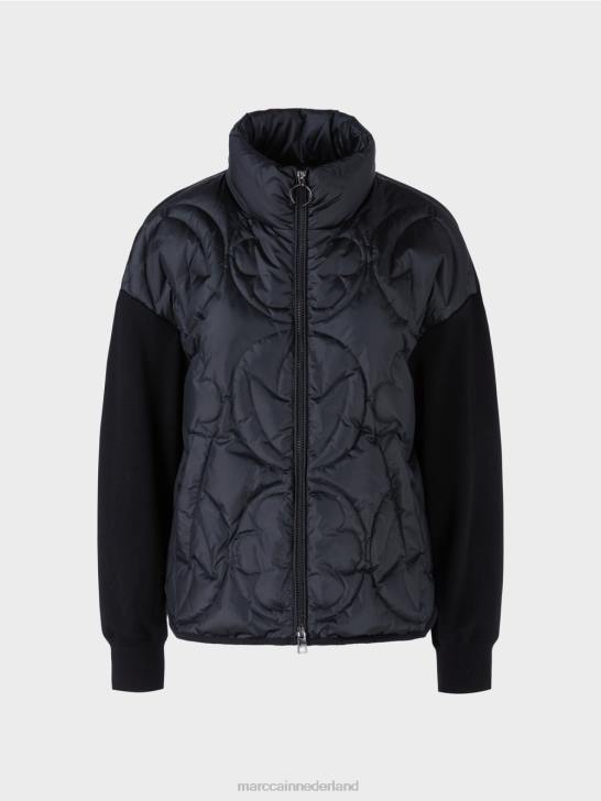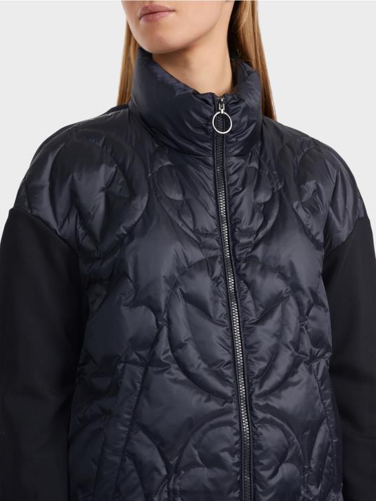 de jas draagt het duurzaamheidslabel "rethink Together". Dit komt doordat de voorkant is gemaakt van gerecycled polyamide en gevuld met dons van ganzen uit gecertificeerde diervriendelijke landbouw. de mouwen en achterkant zijn gemaakt van zachte en flexibele jersey met viscose-gehalte. functionele details zijn onder meer de ritssluiting aan de voorkant, opstaande kraag en schuine paspelzakken. de zoomlijn is afgerond naar de zijnaad toe. de achterkant is iets langer gesneden.