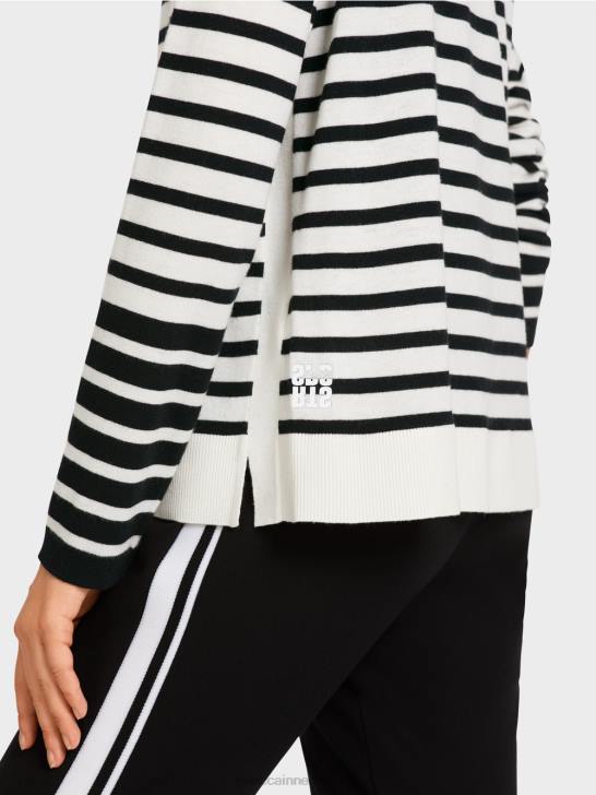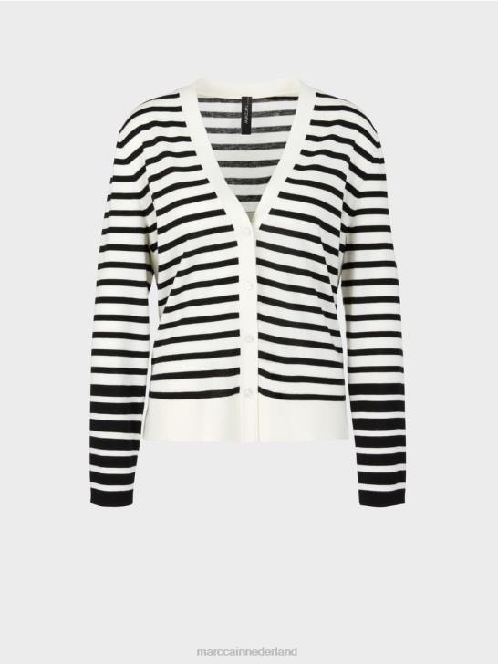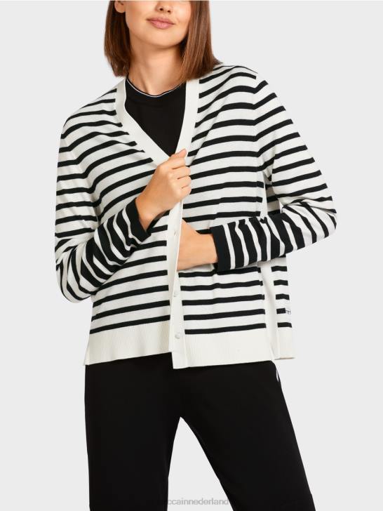 nautisch vest in een hoogwaardige mix van wol en kasjmier. dit gebreide jasje heeft een all-over gestreept patroon. de vlechtstrepen zorgen voor prachtige details. kleine zijsplitten verbeteren de ontspannen pasvorm. Tot de jasdetails behoren een v-hals en knopen.