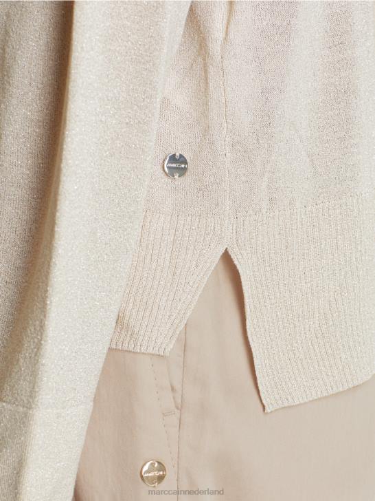 licht vest gemaakt van viscose en lurex garen, wat zorgt voor een delicaat glanseffect. het vloeiende materiaal zorgt voor een aangenaam draagcomfort. kleine zijsplitten en de iets verlengde achterkant maken het ontwerp compleet.