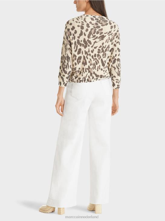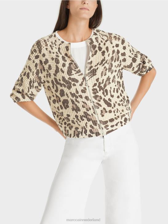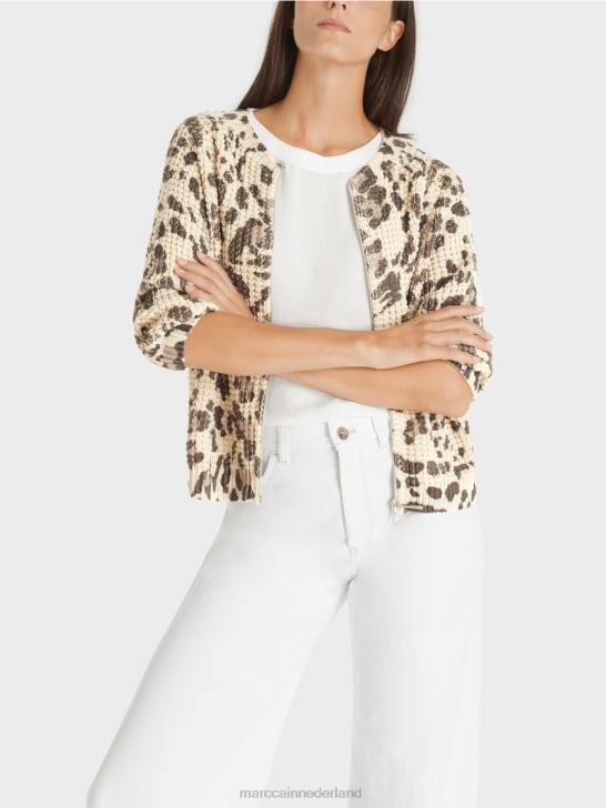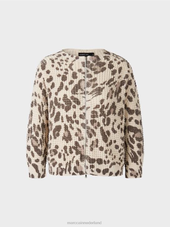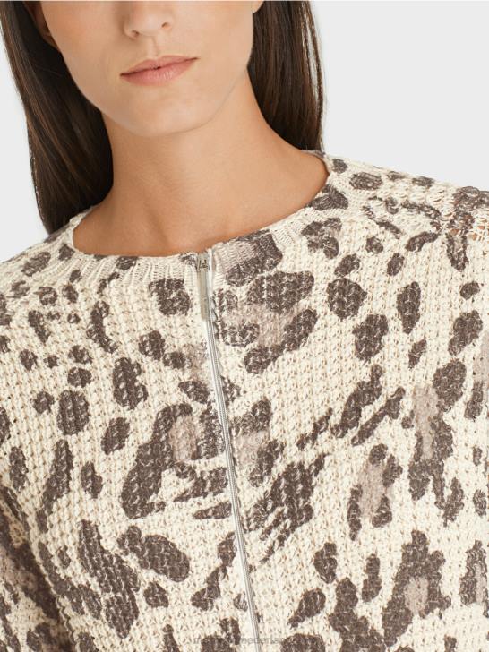 het vest presenteert zich met structuurpatroon en dierenprint. dit item is gebreid en afgewerkt in Duitsland. de verdere verwerking van de afzonderlijke onderdelen wordt uitgevoerd door Europese partnerbedrijven. dit betekent dat het vest "gebreid is in Duitsland". discreet gebruikt metallic garen zorgt voor glinsterende accenten.