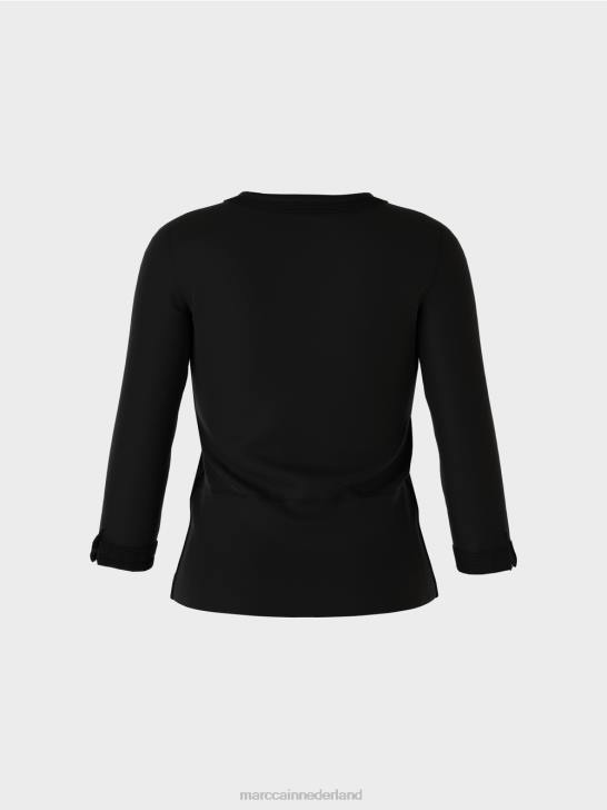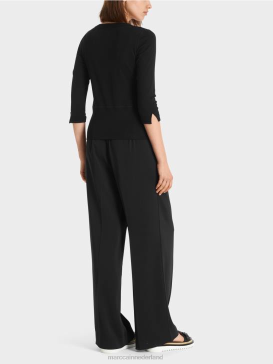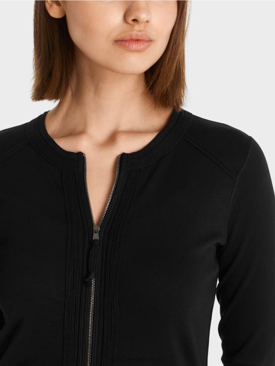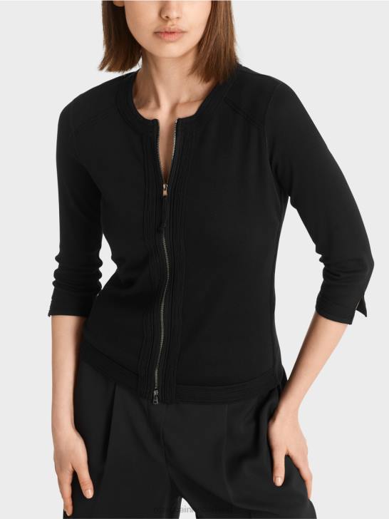 de jas is gemaakt van comfortabele katoenstretch en zit zeer comfortabel. golvende randen en biesjes zorgen voor bijzondere accenten. De jas is voorzien van een praktische tweewegritssluiting.