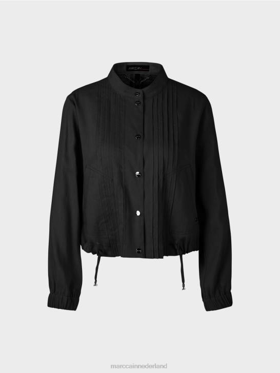 het jasje is gemaakt van een stoere en luchtige mix van linnen met viscose. het ontwerp combineert aspecten van blouse en blouson. de voor- en achterkant zijn versierd met diverse biezen. de breedte van de zoom kan worden aangepast via een trekkoord.