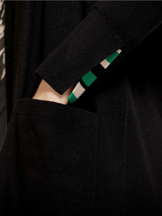 dit vest is gemaakt van zuivere wol en heeft een elegante touch. het heeft een open ontwerp en een casual snit met zijsplitten. twee opgestikte zakken benadrukken het ontspannen comfort. de manchetten met contrastkleurige gestreepte details zorgen voor een decoratief pluspunt.