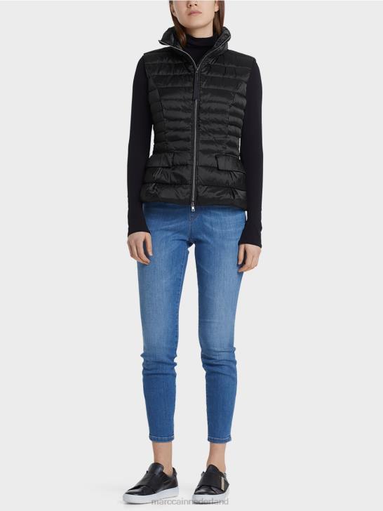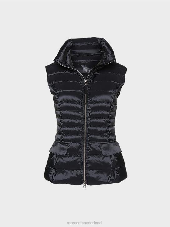 dit decoratief gewatteerde gilet met hoge, opstaande kraag is gevuld met warmtedons. een glinsterende ritssluiting aan de voorkant en twee opgestikte zakken met drukknopen completeren de hoogwaardige vrijetijdskledingstyling. een ideale pasvorm wordt verzekerd door het strak getailleerde silhouet.