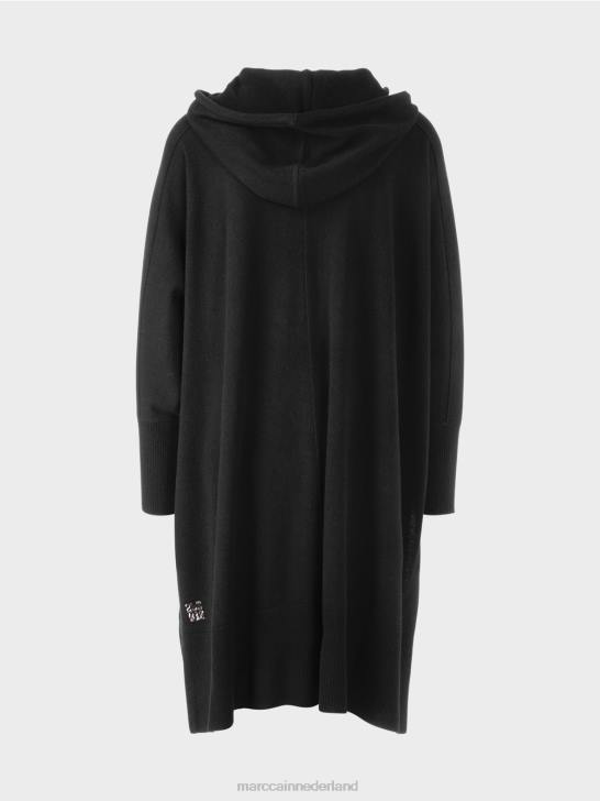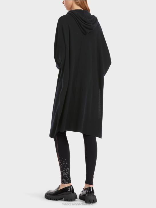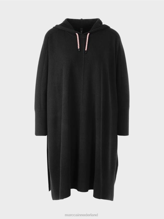feelgood item van een zachte wolmix met kasjmier. De kimonovorm en de extreme breedte zorgen ervoor dat het item er cape-achtig uitziet. In tegenstelling tot een cape zijn de zijnaden echter gesloten, behalve de spleten aan de zoom. dit voorkomt dat er koude lucht binnendringt. de breedte van de capuchon is verstelbaar via een trekkoord. het artikel draagt het duurzaamheidslabel ‘samen heroverwegen’.