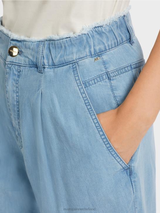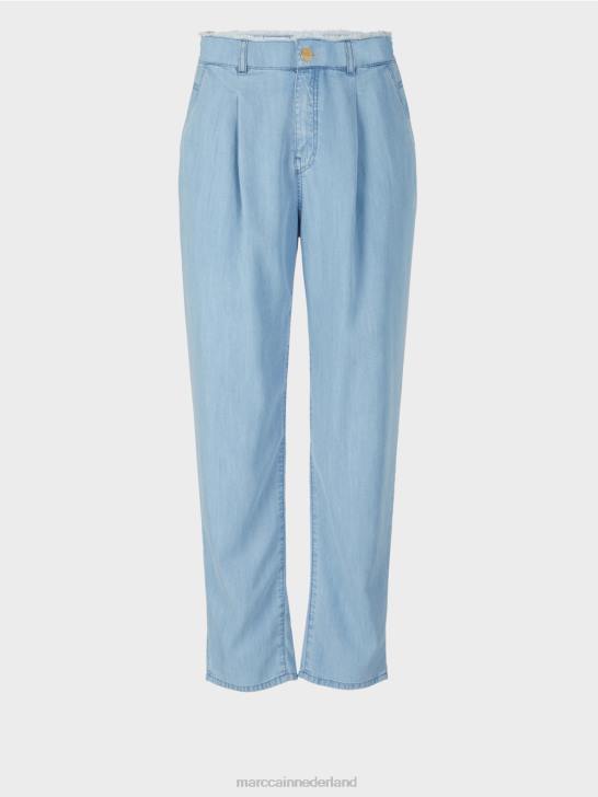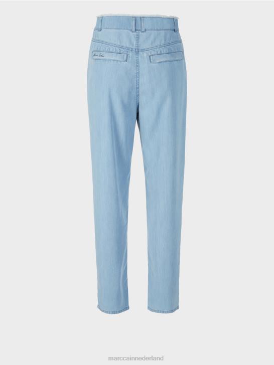 deze jeans is gemaakt van katoen met lyocell en draagt het duurzaamheidslabel "rethink Together". ze zijn wijd gestyled bij de heup en lopen taps toe naar de enkel. de tailleband is voorzien van subtiele franjes. De broek is afgewerkt met een zadel en paspelzakken aan de achterkant.