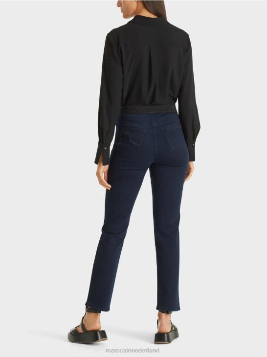 de jeans is slim fit en een normale taillehoogte hebben. de siena jeans zijn gemaakt van biologisch katoen en dragen het duurzaamheidslabel 'rethink Together'. de tailleband is gemaakt met een brede stretchband met logo voor een comfortabele, optimale pasvorm. één achterzak is versierd met edelstenen.