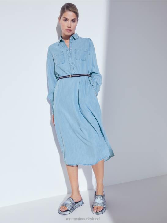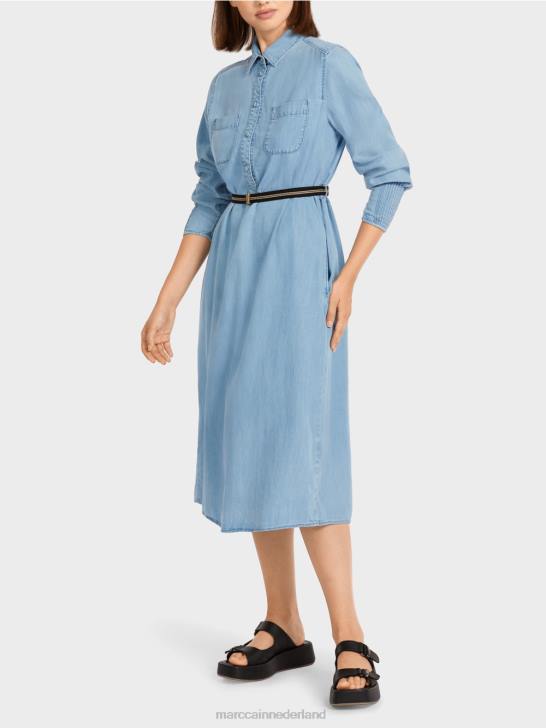 deze denim jurk is gemaakt van een mix van katoen en lyocell en draagt het duurzaamheidslabel "rethink Together". het is licht uitlopend en voorzien van zijnaadzakken. biesjes aan de achterkant en aan de mouwboorden geven het ontwerp een vrouwelijke touch. de wijdte in de mouwzoom is verstelbaar via twee knopen en lussen. de taille kan geaccentueerd worden met een sportieve stretchriem