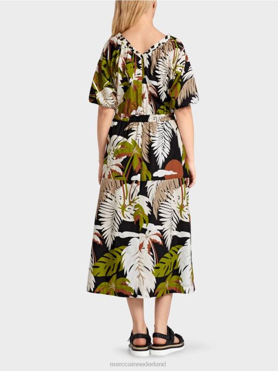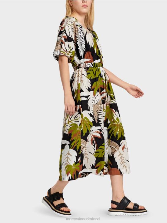 kleding diep olijfgroen 464J85 katoenen jurk met bladmotief Marc Cain