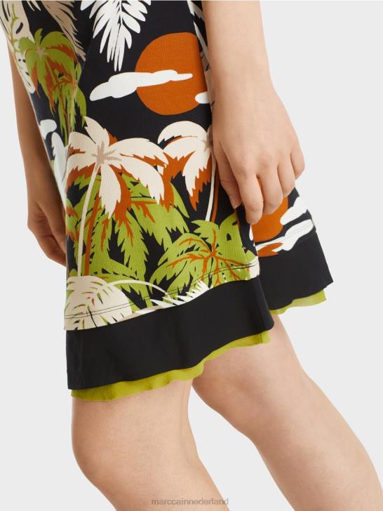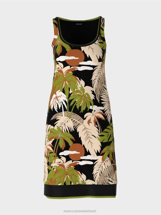 kleding diep olijfgroen 464J96 jurk met palmprint Marc Cain
