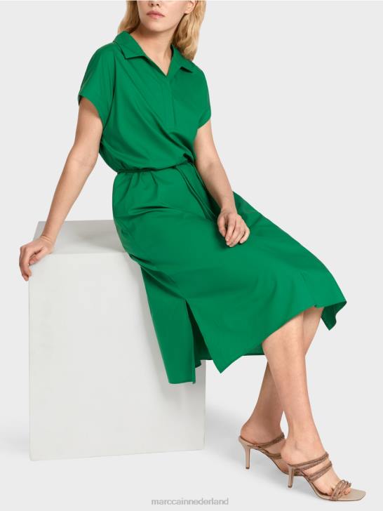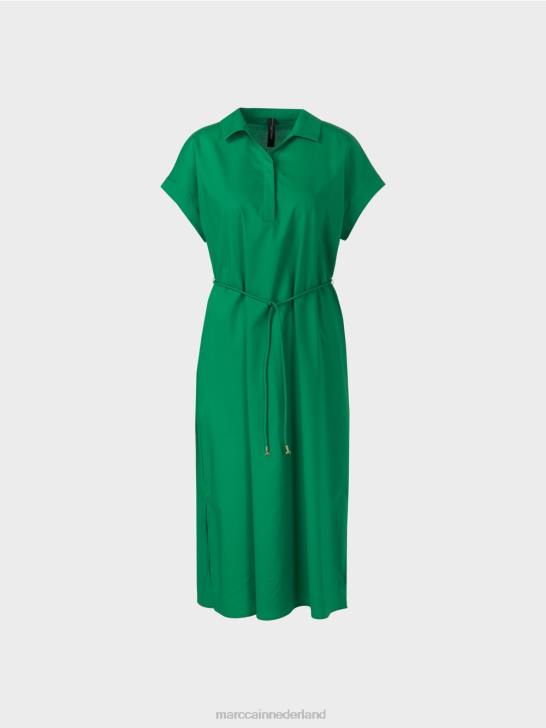 kreukvrije jurk in effen kleuren. Deze klassieke overhemdjurk heeft een casual polokraag voor een echt sportieve look. de halslijn heeft een verborgen knoopsluiting, terwijl de wijde kapmouwen de casual touch benadrukken. het silhouet krijgt een vrouwelijke taille door de wikkelriem in dezelfde kleur. een vrouwelijk extraatje: dankzij de zijsplitten kan de zoom rond de benen draaien.