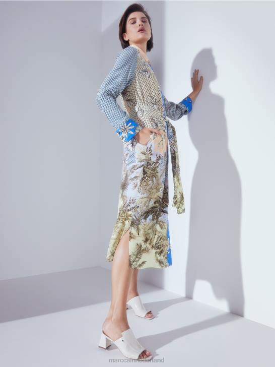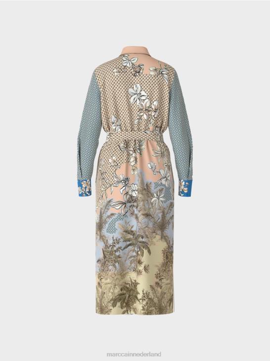 kleding helder bruin 464J101 elegante overhemdjurk met patroonmix Marc Cain