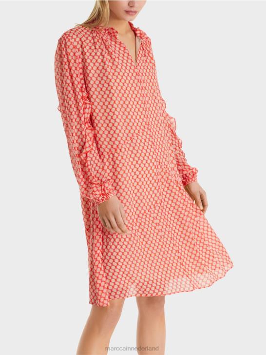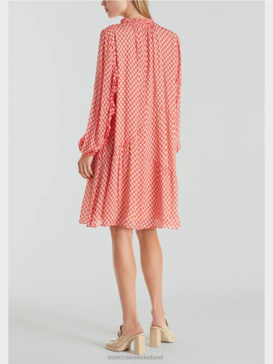 de jurk is gemaakt van soepel vallende, delicate viscose en heeft een relaxed silhouet met zwierig rokgedeelte. Het item is voorzien van een binnenvoering en kleine ruches aan de mouwen, die de vrouwelijke look benadrukken.
