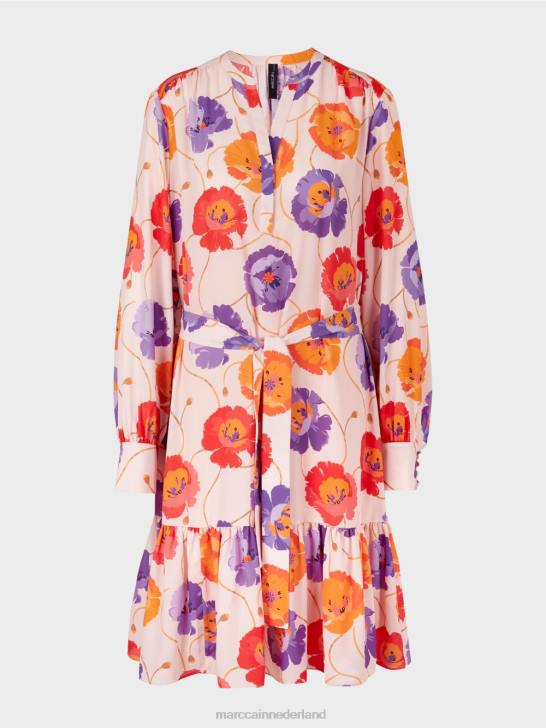 de vrouwelijke jurk met volantstap is bedrukt met weelderige bloemen en is een absolute blikvanger. de jurk heeft een soepel vallende, uitneembare onderrok en steekzakken. de smalle band kun je gebruiken om de taille te accentueren.