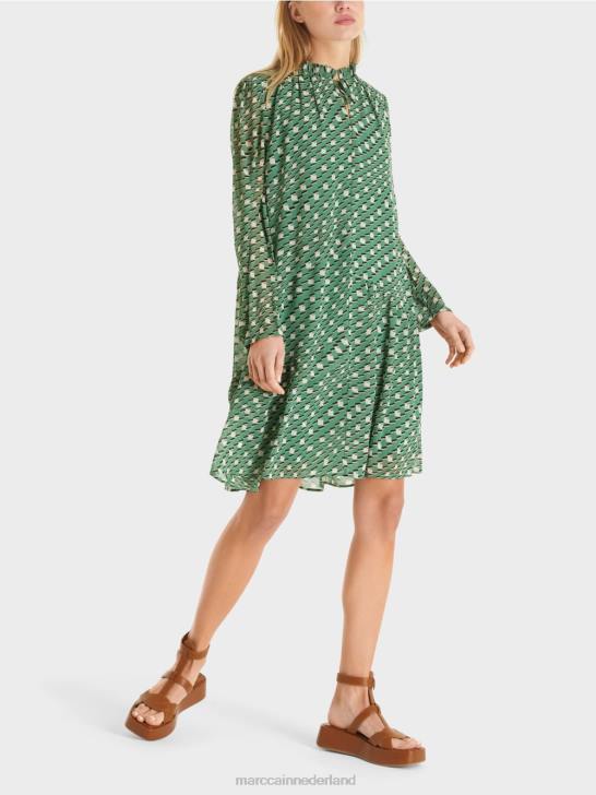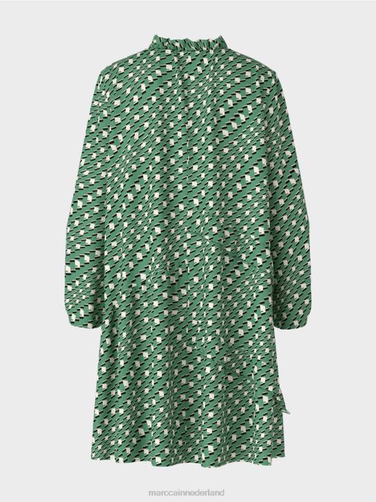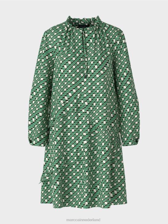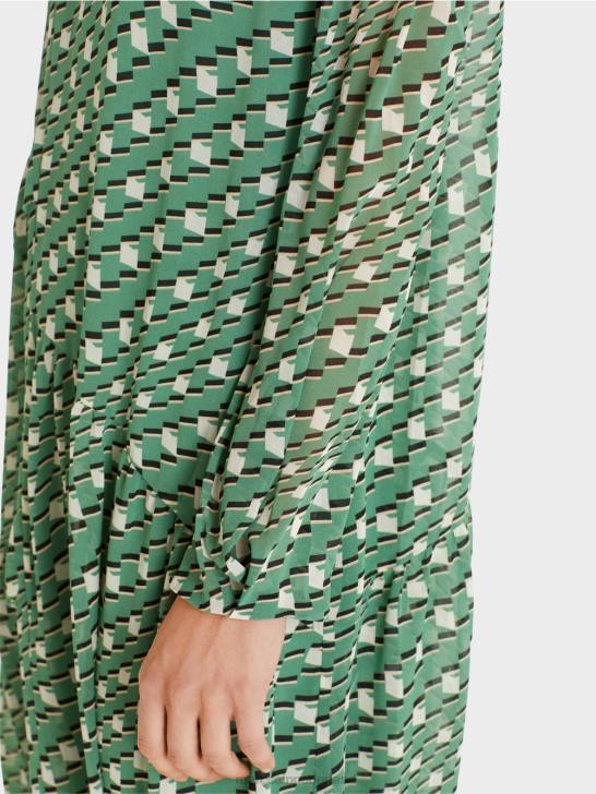 de jurk presenteert zich met een relaxed silhouet en een zwierig rokgedeelte met kleine ruches. het vloeiende, lichtgewicht materiaal zorgt voor een aangenaam draagcomfort. Het item wordt geleverd met een binnenvoering en een koord bij de kraag.