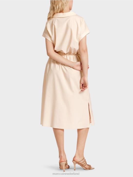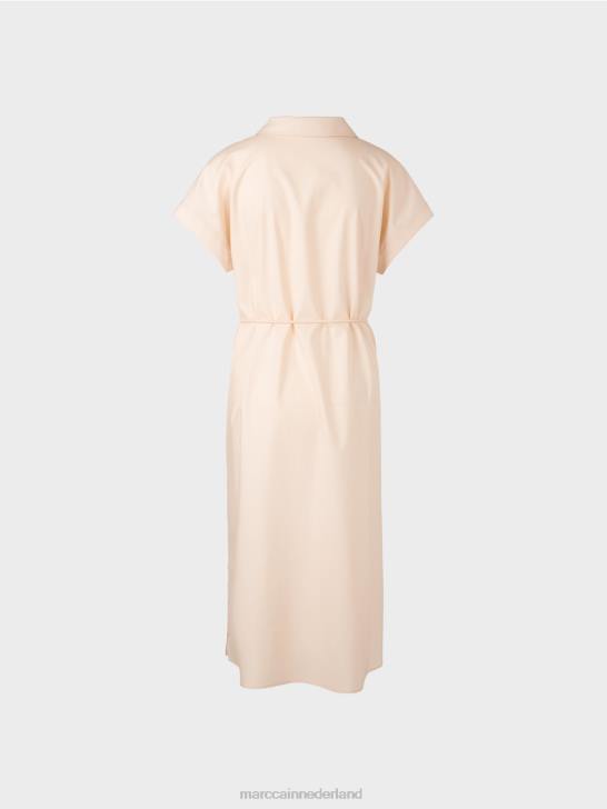 kreukvrije jurk in effen kleuren. Deze klassieke overhemdjurk heeft een casual polokraag voor een echt sportieve look. de halslijn heeft een verborgen knoopsluiting, terwijl de wijde kapmouwen de casual touch benadrukken. het silhouet krijgt een vrouwelijke taille door de wikkelriem in dezelfde kleur. een vrouwelijk extraatje: dankzij de zijsplitten kan de zoom rond de benen draaien.
