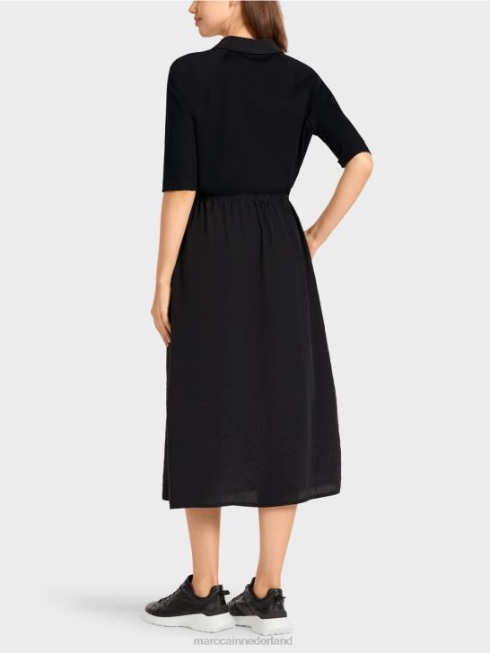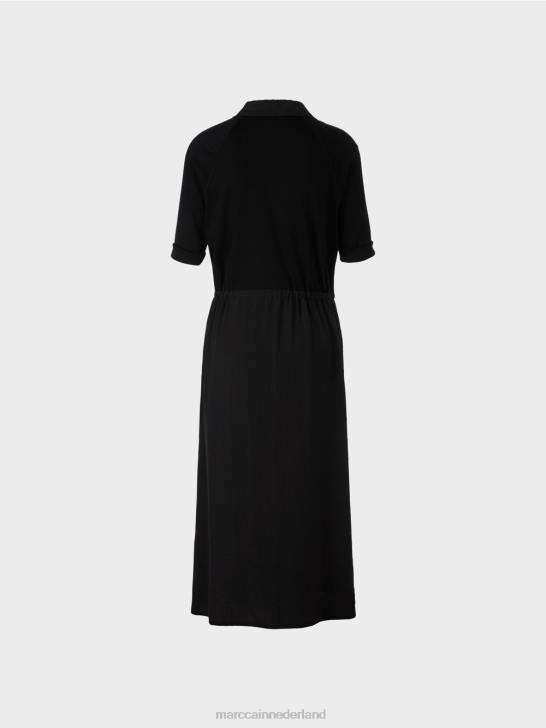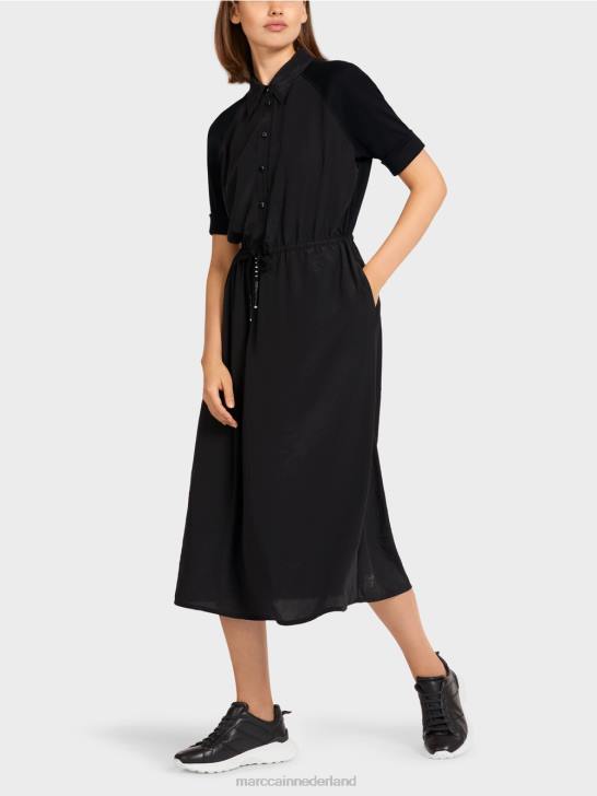 aansluitende jurk in een materiaalmix van onder andere katoen en elastaan. Deze jurk heeft een klassieke overhemdkraag en een halve knoopsluiting. Het onderscheidende kenmerk is de sportieve materiaalmix met open zigzagnaden. de raglanmouwen bieden een lichte stretch voor extra comfort. een trekkoord met mc sports-opschrift zorgt voor vrouwelijke accenten.
