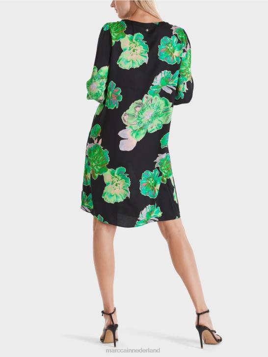 de jurk is gepresenteerd met een bloemenprint en heeft een relaxed silhouet. de mouwen zijn lang en aan de uiteinden gesmokt. een extra blikvanger is de langsplooi aan de voorzijde.