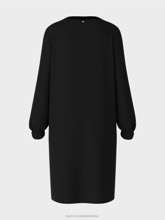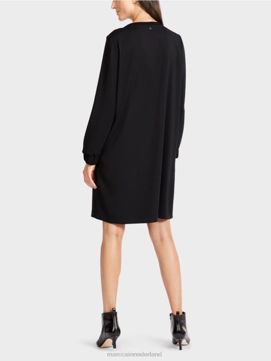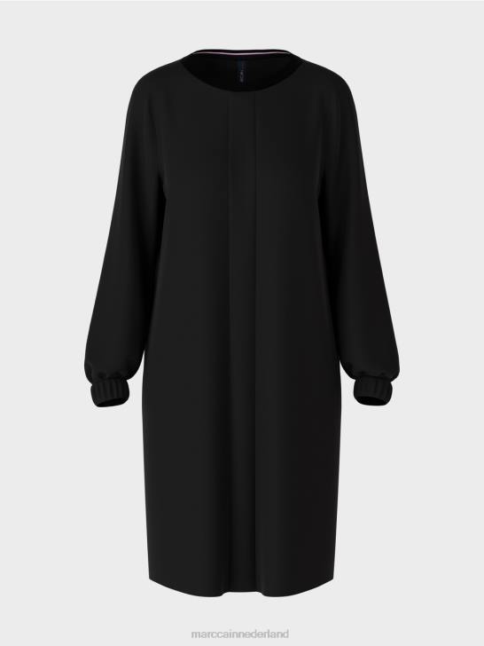 deze korte, sportieve jurk is nonchalant los en recht. het kan ook met een strakke broek worden gedragen. de halslijn is afgewerkt met zachte ribgebreide details. de mouwzoom heeft een brede elastische boord. de naadeffecten middenvoor zorgen voor een stijlvolle look.