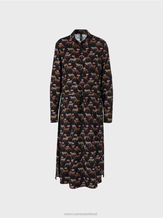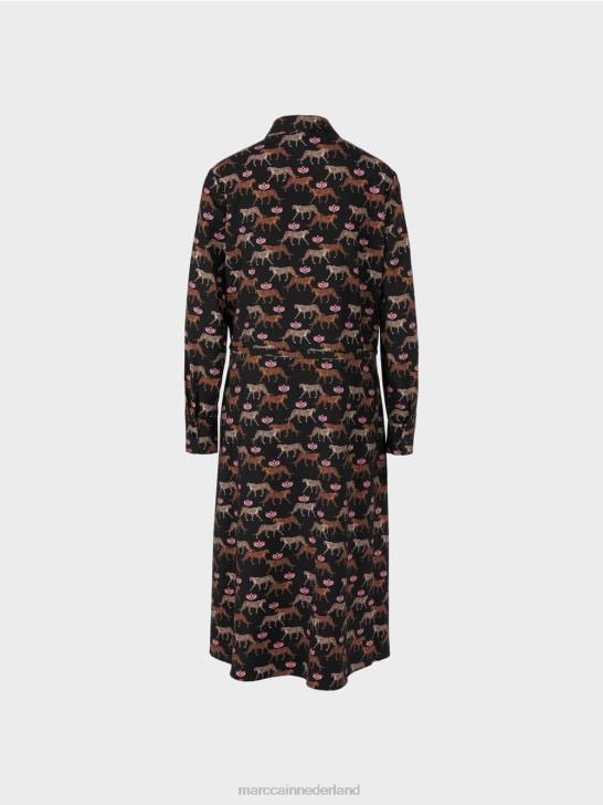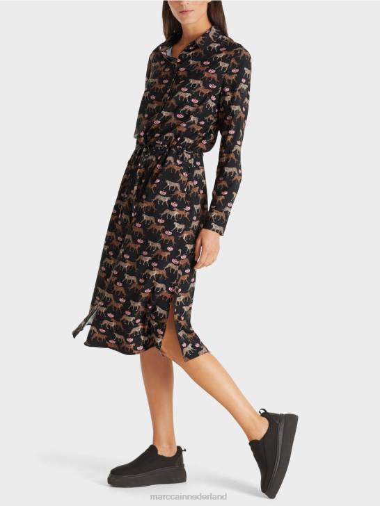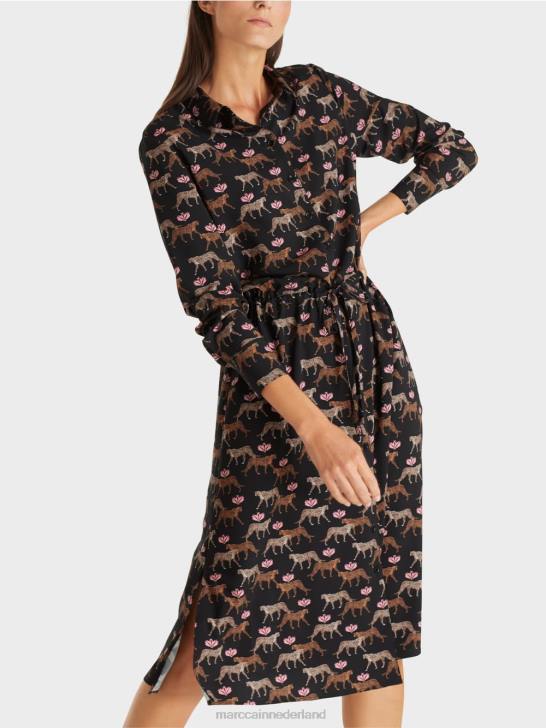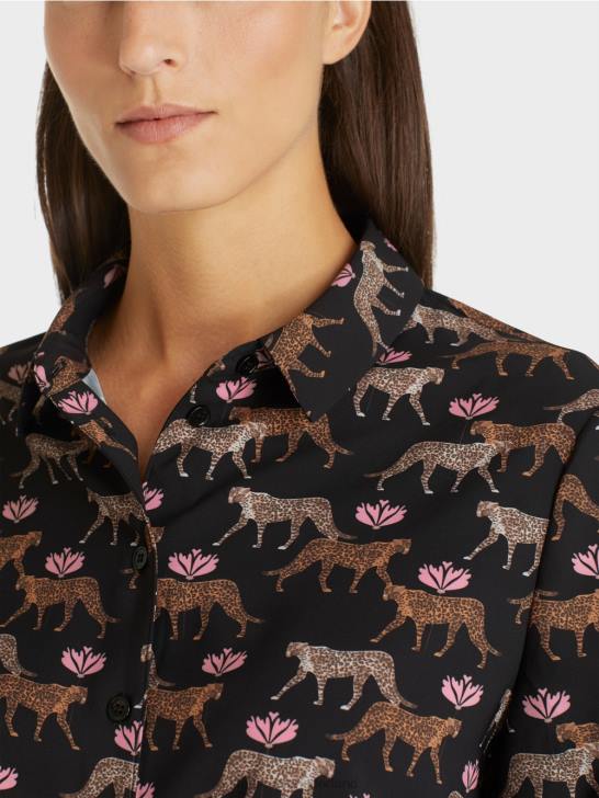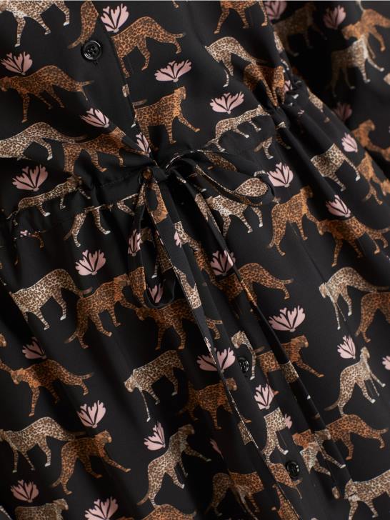 de jurk presenteert zich met kleine luipaarden, bedrukt in verschillende tinten. de smalle band kun je gebruiken om de taille te accentueren. de vloeiende overhemdblousejurk met manchetten met twee knopen is doorgeknoopt en gemaakt met elastaan. korte zijsplitten en paspelzakken ronden de stijl af.