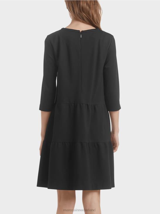 vrouwelijke jurk met een lichte a-vorm en verkorte mouwen met een kleine split. de jersey jurk presenteert zich met romantische gelaagde volants en wordt gesloten met een naadloze ritssluiting aan de achterkant. praktische zakken verhogen het draagcomfort.