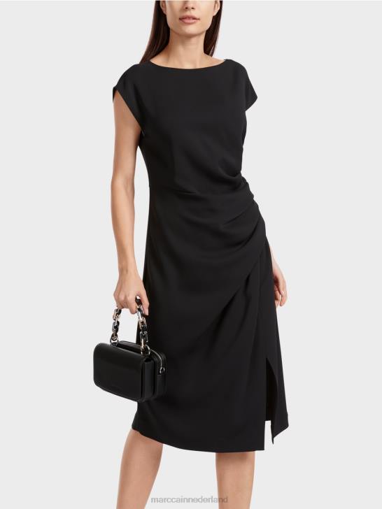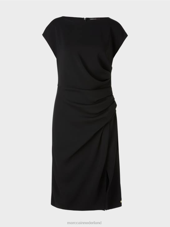 asymmetrisch getailleerde jurk gemaakt van een zachte materiaalmix. het wikkeleffect aan de linkerkant geeft deze stretchy jurk een sportieve touch. het is nauwsluitend met een aangename loopgleuf. het mouwloze ontwerp wordt aangevuld met een ronde halslijn en een verborgen ritssluiting aan de achterkant.