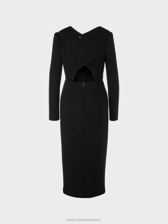 elegante jurk in nauwsluitend silhouet gemaakt van rekbaar materiaal. de eyecatcher van deze jurk is de open rug met een verfijnde cross-over snit. het voorste gedeelte is voorzien van een v-hals. de mouwen zijn licht gegolfd aan de inzet en lopen taps toe. dankzij de ritssluiting in de achterrok is de jurk gemakkelijk aan en uit te trekken.